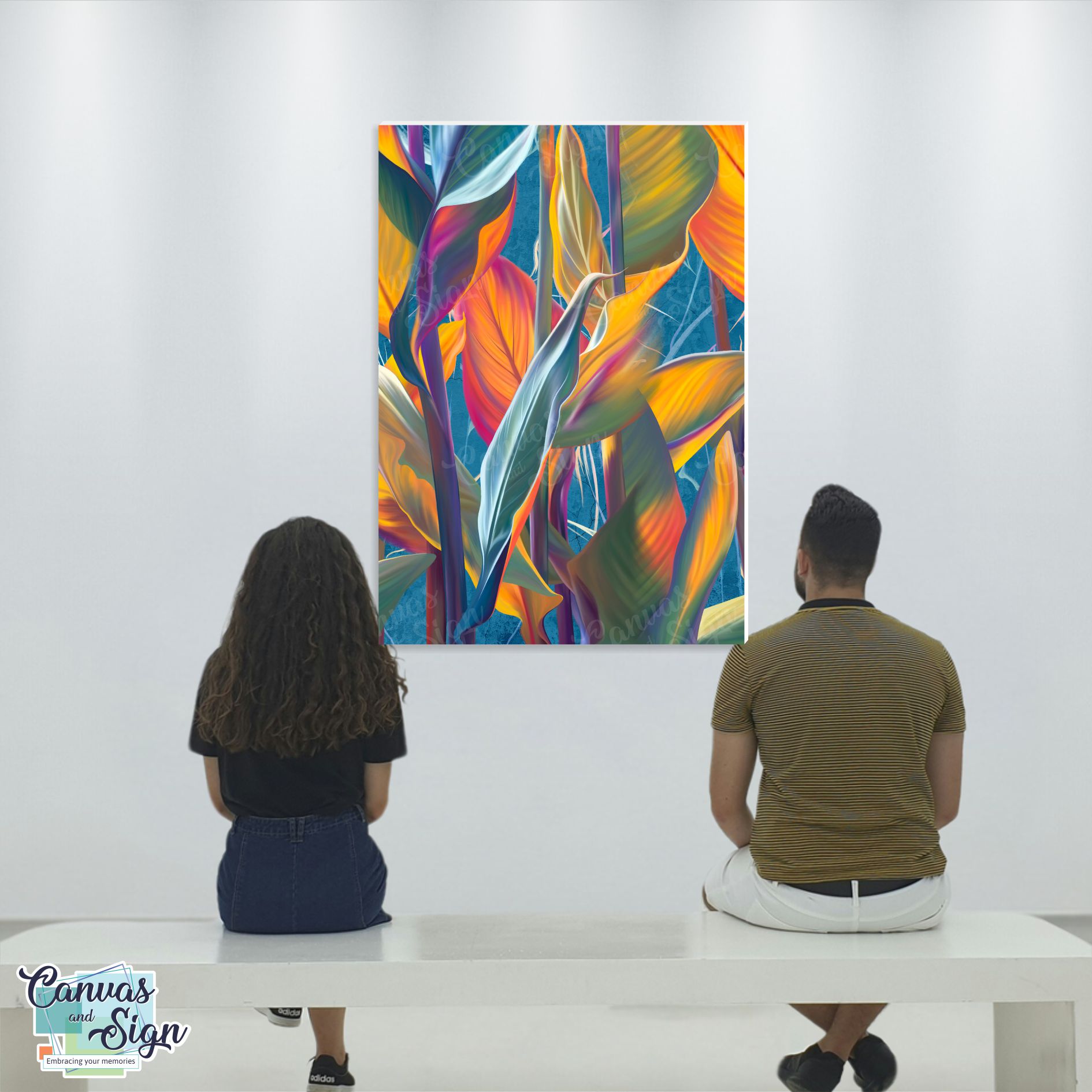 We print on 280gsm poly cotton canvas material and offer it in matt or satin gloss.